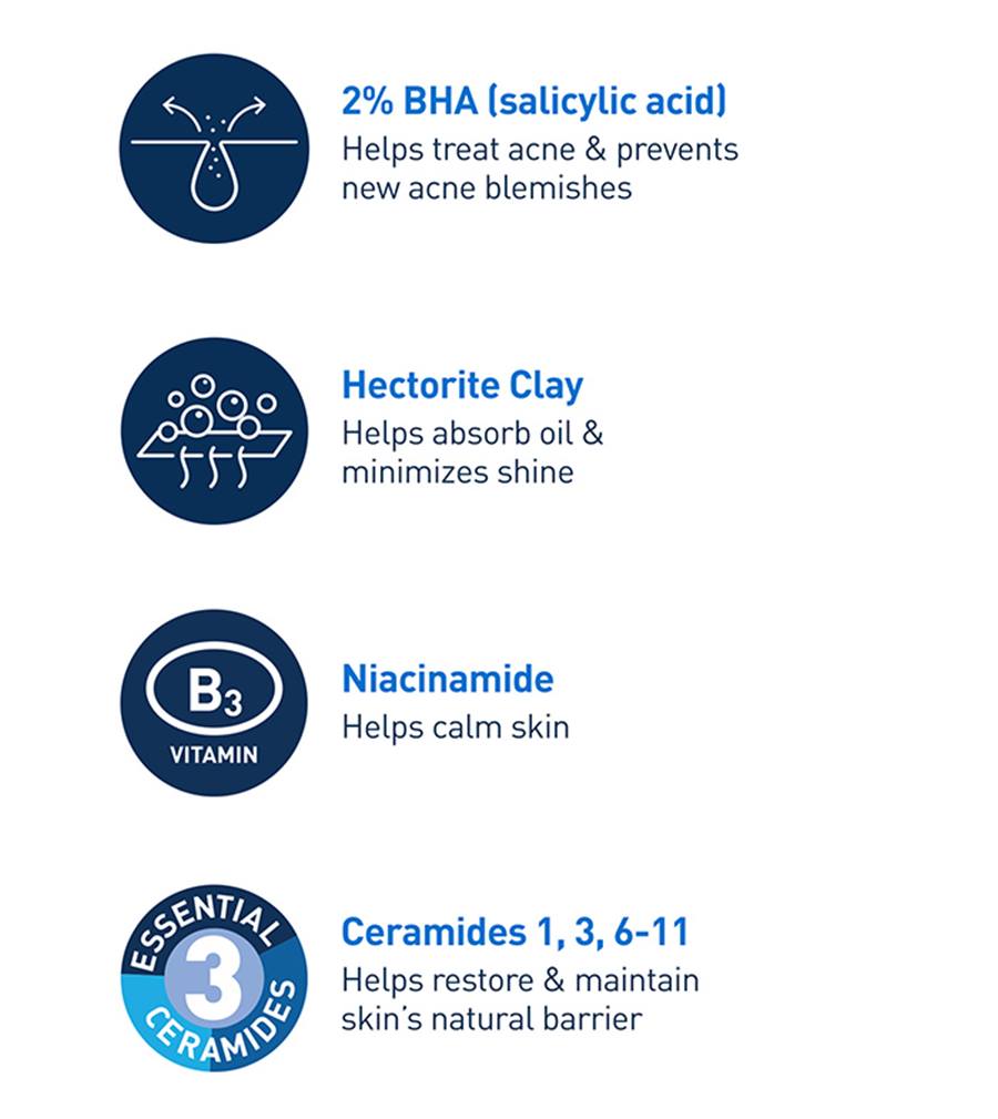 CeraVe is the #1 dermatologist-recommended cleanser brand for acne*, and our new Acne Control Cleanser with 2% salicylic acid is formulated to clear acne, reduce blackheads and improve the appearance of pores, while purifying clay helps absorb excess oil. Featuring Oil-Absorbing Technology to minimize visible shine, this refreshing, gel-to-foam salicylic acid cleanser effectively removes dirt and excess oil, gently exfoliates and penetrates clogged pores to help prevent new acne breakouts. Acne Control Cleanser also maintains the skin’s protective barrier with 3 essential ceramides, calms the skin with niacinamide and reduces acne while leaving the skin soft, smooth and hydrated.
