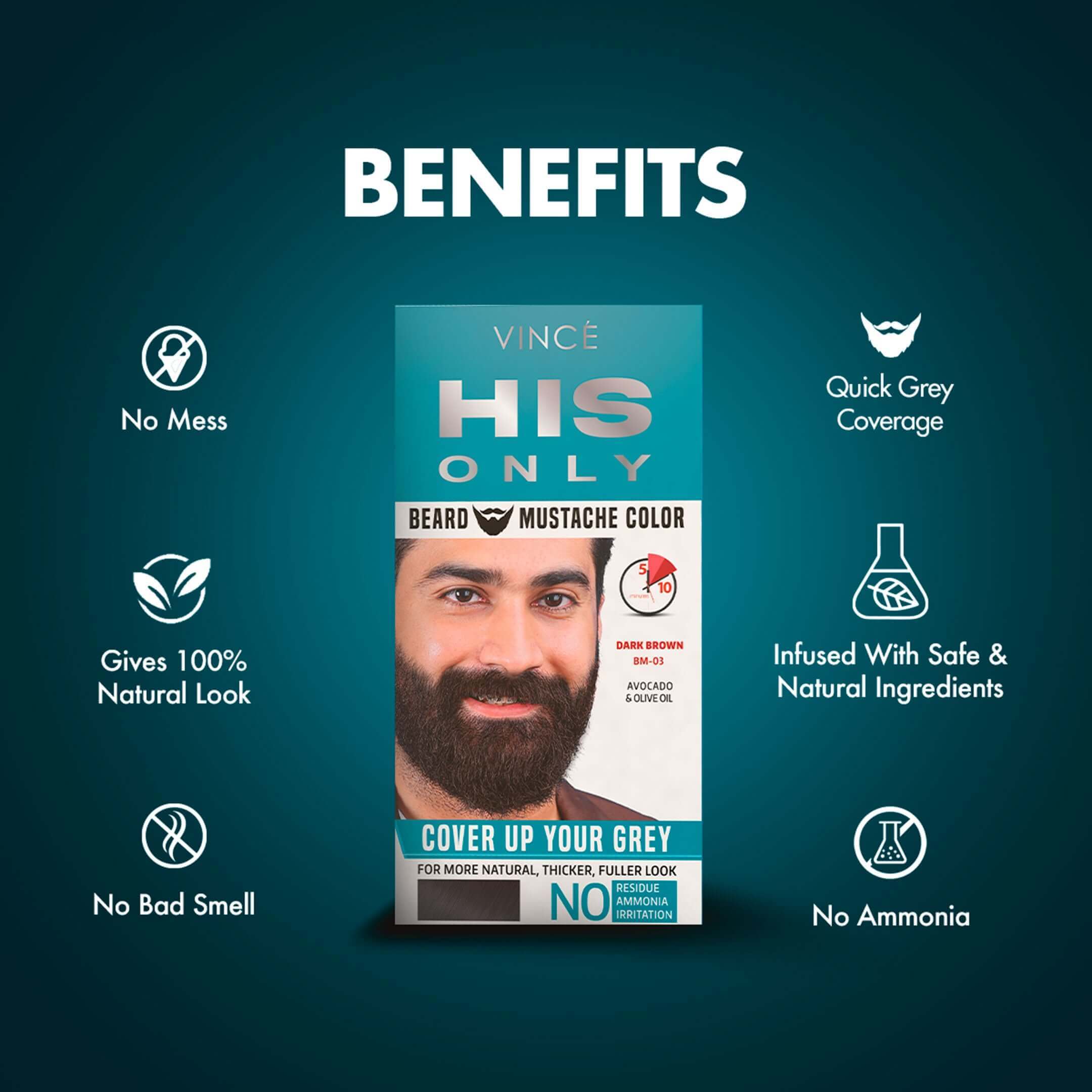 VINCÉ Exceptional Ammonia-Free Color is an advanced Formula, infused with a unique blend of the finest ingredients that is effective even on the coarsest facial hair. It helps to cover grey without leaving any residue on the skin while giving a natural look. It keeps your beard and mustache looking fuller, vibrant, and captivating. VinceHis Only Beard & Mustache Coloroffers all the benefits in one pack that makes it unique. It is an advanced ammonia-free formula which is easy to use, gives100% natural look, causes no mess, no irritation, and do not have any bad smell.