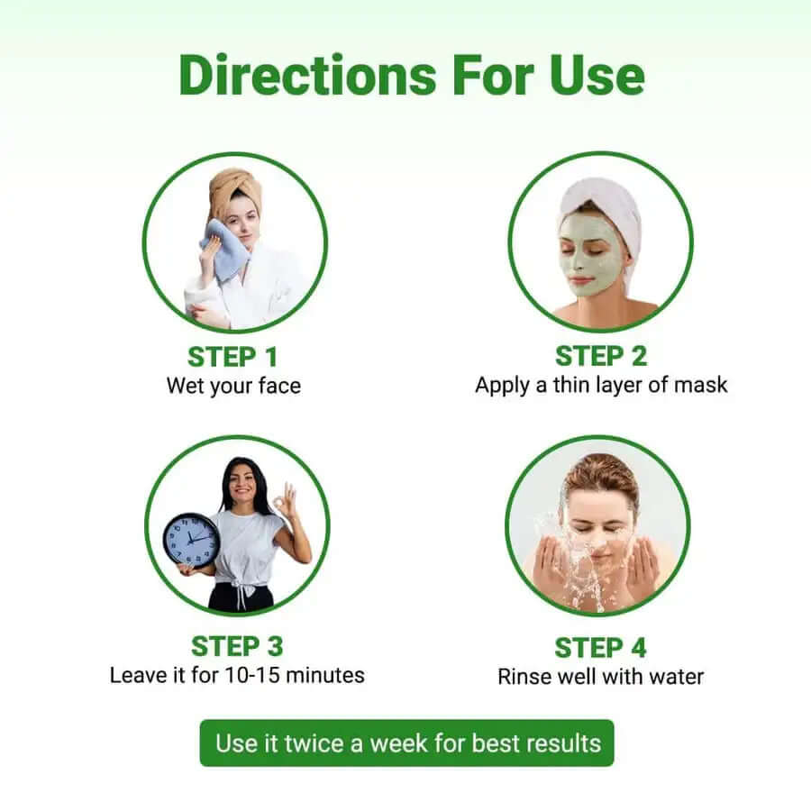 Wet your face. Apply a thin layer of Vince Green Tea Mud Mask onto the face while avoiding the sensitive eye area. Leave the mask for up to 10-15 minutes. Then, rinse with fresh water. Use it 2-3 times a week for a fresh, rejuvenated, & youthful look.