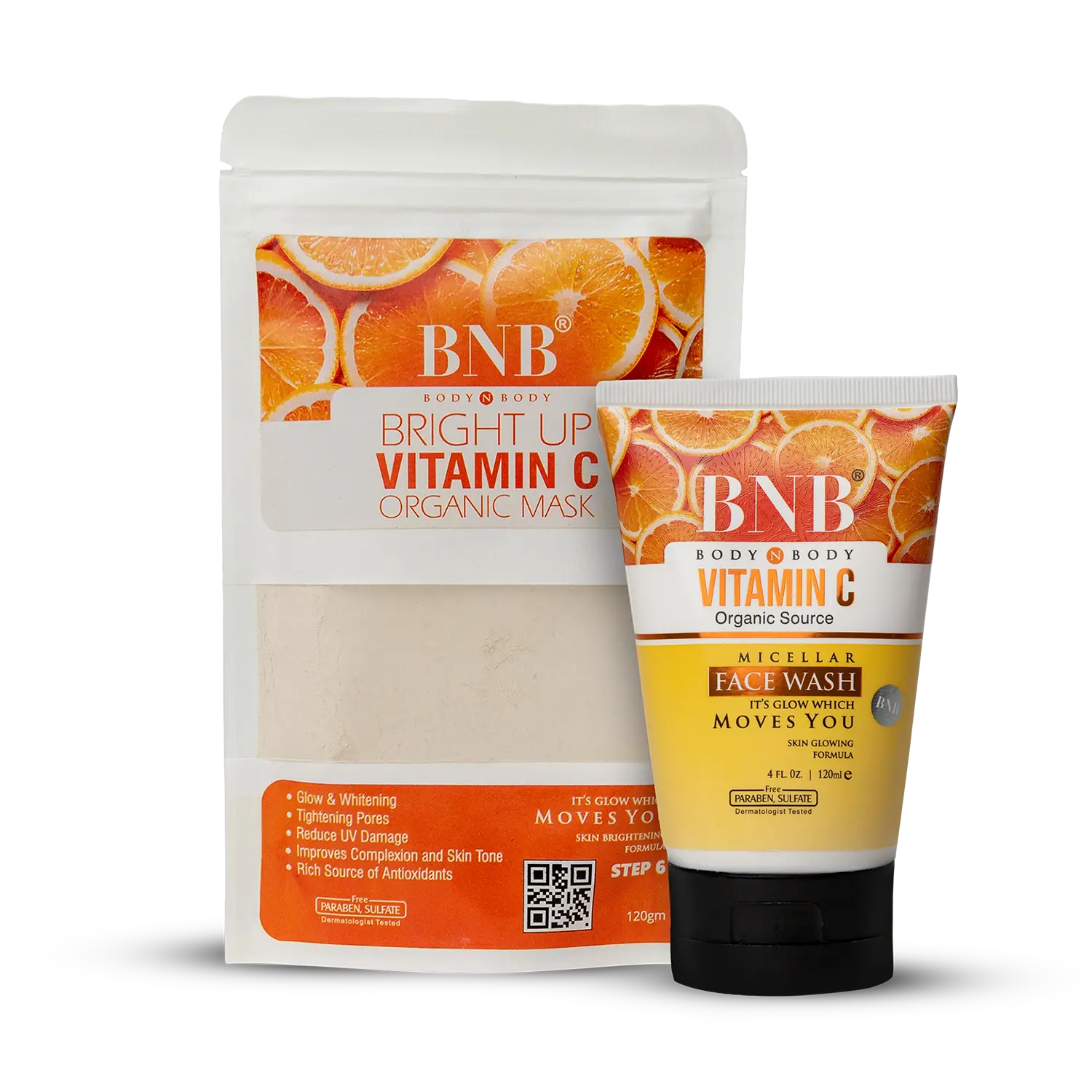 Vitamin C facewash and face mask are skincare essentials infused with the antioxidant power of vitamin C. The facewash cleanses and brightens, promoting a refreshed complexion by removing impurities. Meanwhile, the face mask provides a revitalizing treatment, reducing dullness and promoting a more radiant skin tone. Both products work together to enhance skin clarity and support a healthy, glowing appearance.