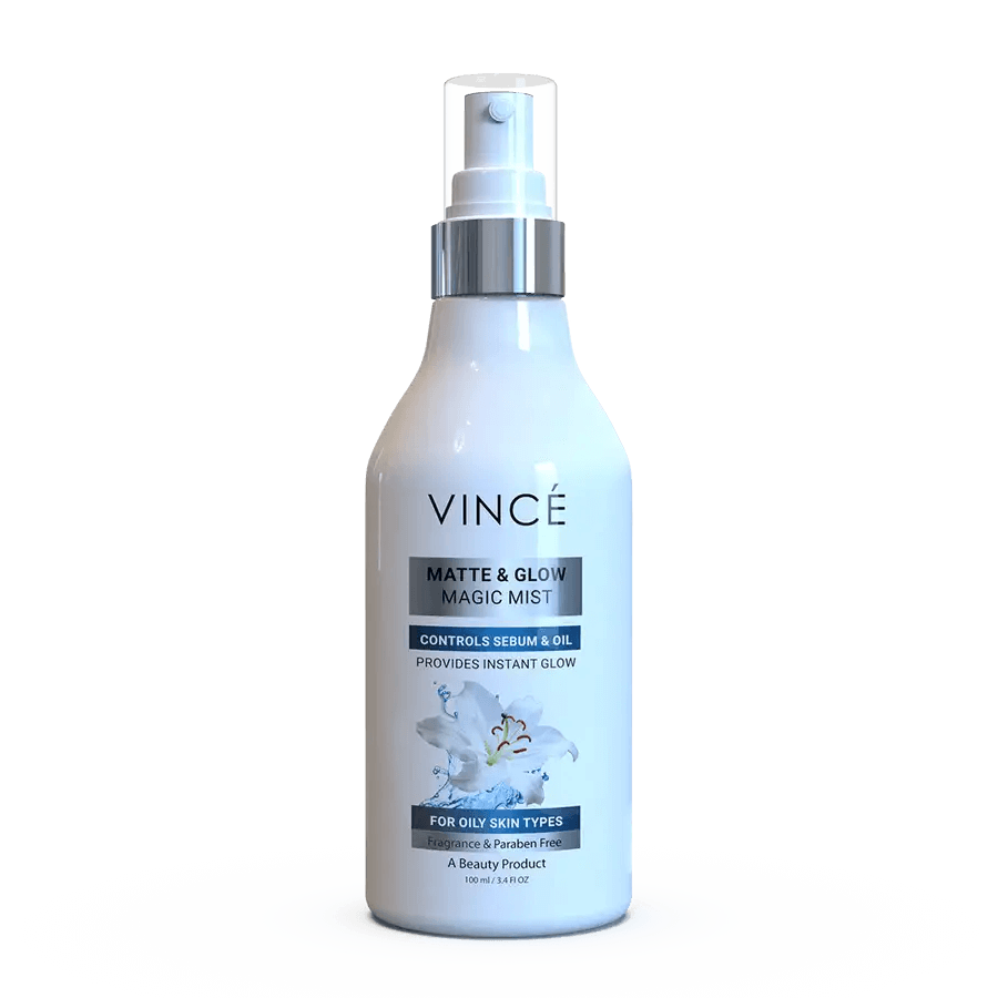 Vince Matte & Glow Magic Mist instantly clarifies, mattifies, and illuminates your skin. This magical refreshing mist gets its rich mattifying, brightening, and calming properties from a powerful unique blend of Zinc PCA, Licorice extract, and Chamomile extract; all of which are effective skin-beneficial ingredients that help to keep skin oil-free, support to control excessive shine, enhances skin’s natural glow and helps to calm irritation. It helps to keep skin matte, radiant, energized, and glowing.