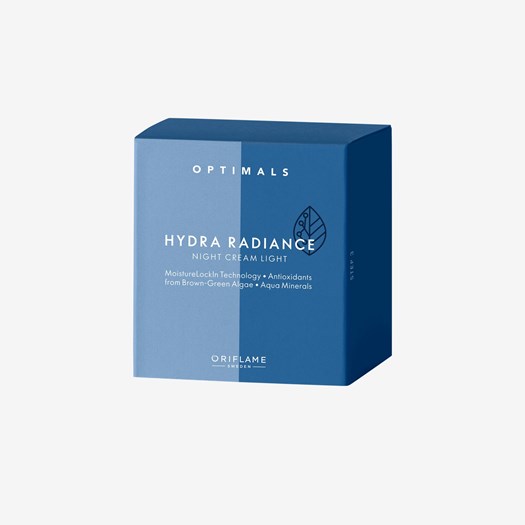 Oriflame Optimals Hydra Radiance Night Cream Light is a lightweight, hydrating night cream that is formulated to restore skin hydration and balance shine while you sleep.