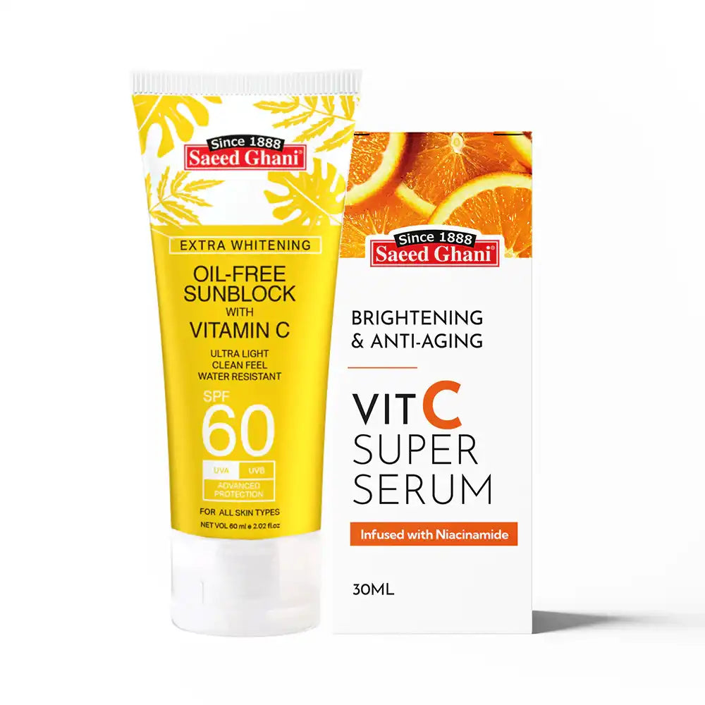 Deal Includes: Vitamin C Brightening & Anti-Aging Super Serum & Sunblock SPF 60 with Vitamin C.