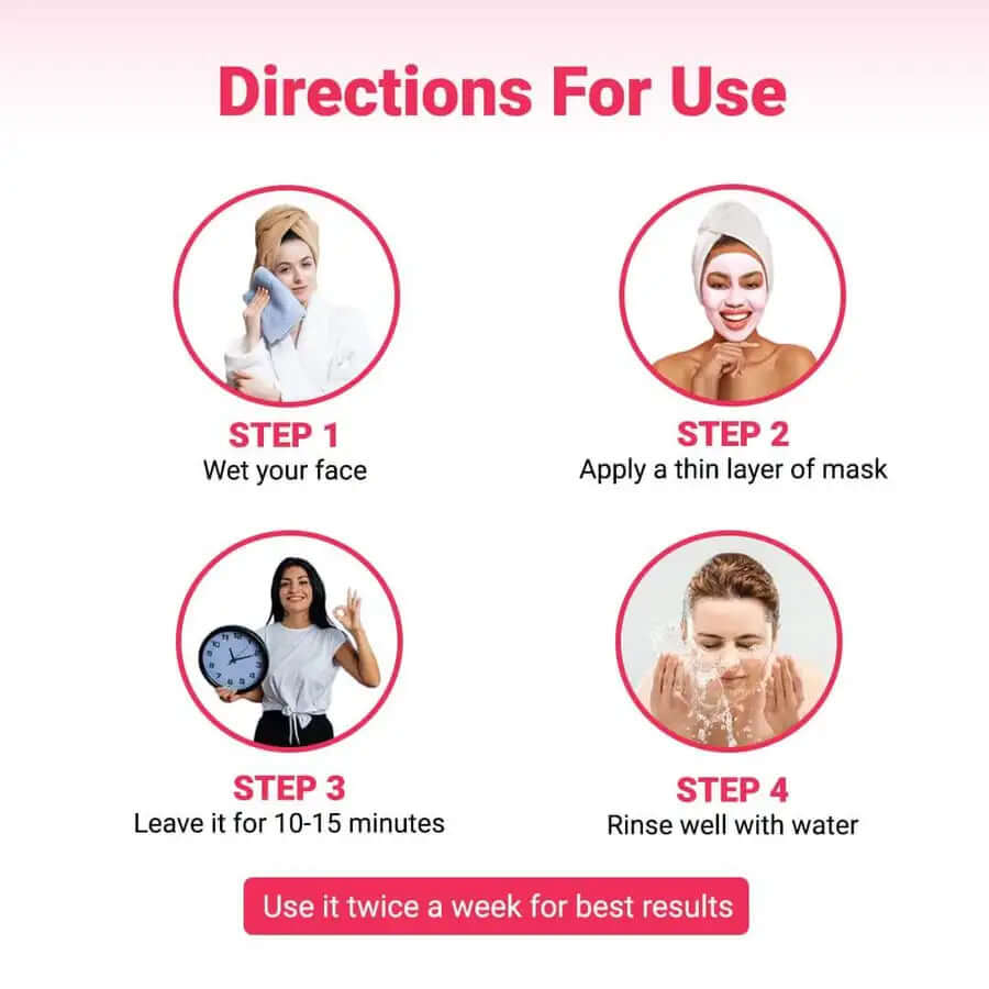 Wet your face. Apply a thin layer of Vince Rose Mud Mask evenly onto the face. Leave the mask for up to 10-15 minutes. Then, rinse with fresh water. For best results, use it 2-3 times a week.