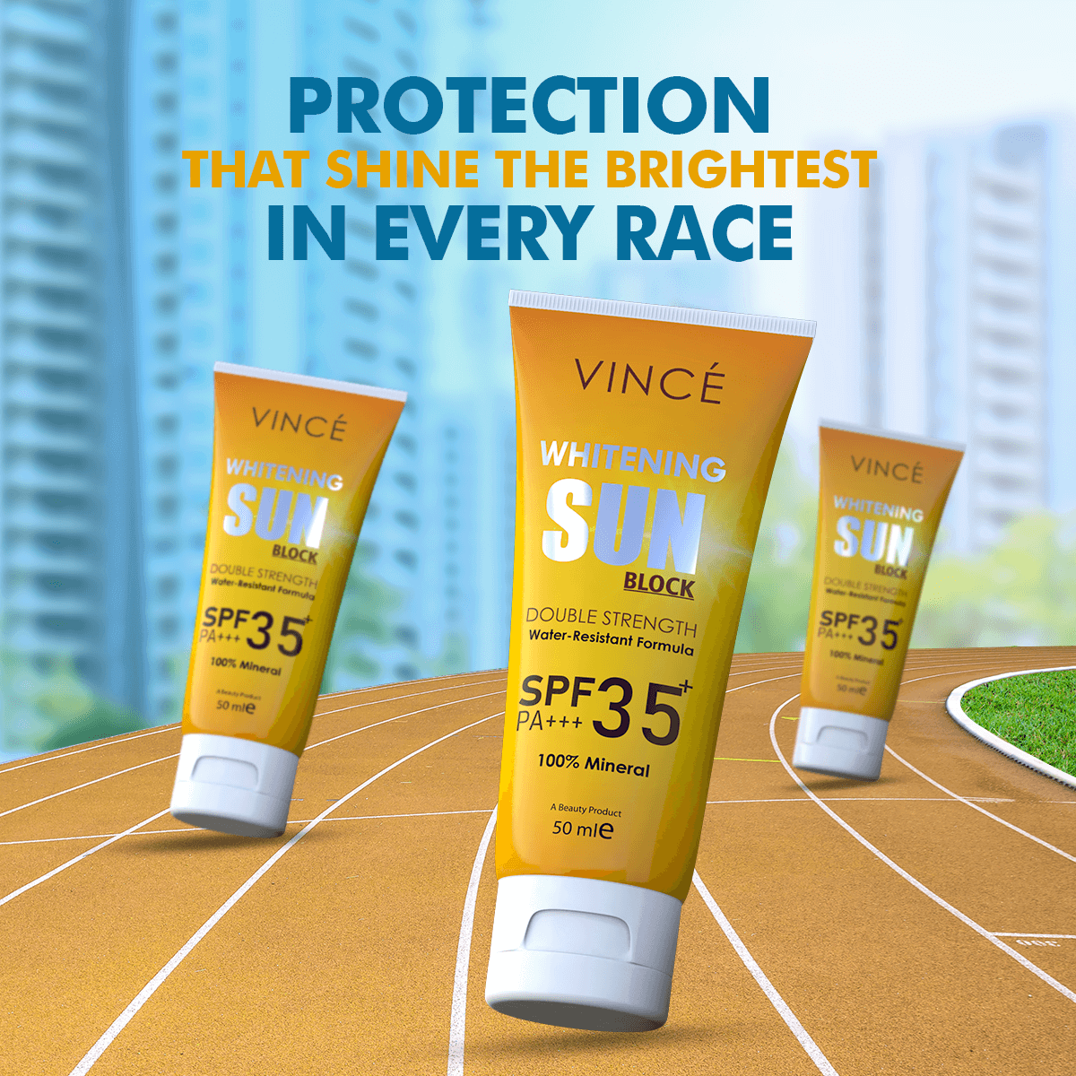 Vince Whitening Sunblock SPF 35 is a 100% mineral, skin-brightening, and water-resistant formula that helps to provide strong protection against the sun’s harmful UV rays while keeping skin smooth and dewy for a long-lasting effect. Its lightweight, non-greasy texture, provides a shield against sun damage and reduces the risk of skin darkening, pigmentation, and premature aging. This sunblock is suitable for all skin types and also good for children’s and adults of all ages.